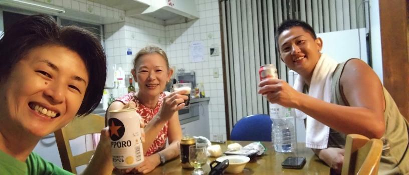 お宿に着いた時、私は、徳島から岡山への運転、岡山から名古屋への新幹線、名古屋から阿智村への運転で疲れ切っていて、チェックインの説明を受けながら持参したお酒を飲む始末。それなのに「お疲れ様〜私も一緒に飲もうっと」と黒ラベルを持って隣で一緒に飲んでくれました。ありがたい!本当に素敵なさっぱりしたオーナーでGoogleの評価って当たってると思ったのでした。