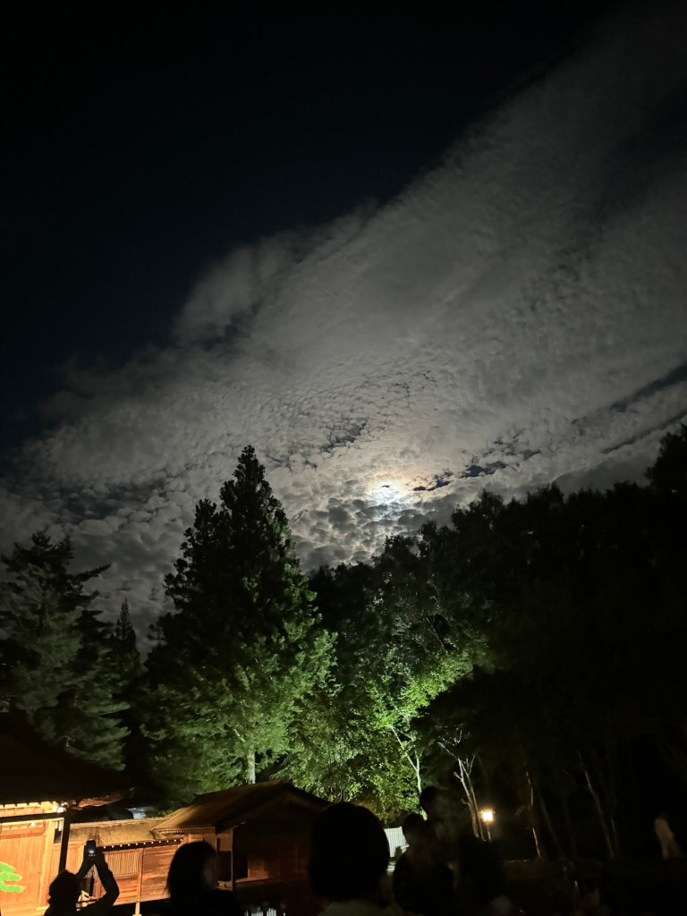 お月見の祭事はずっと曇っていたのに、終わりかけの頃に雲のカーテンが両側にパッと開き、右側から誰がどう見ても龍の形をした雲が出てきました。本当に龍神様って存在するのだと、圧倒されました。